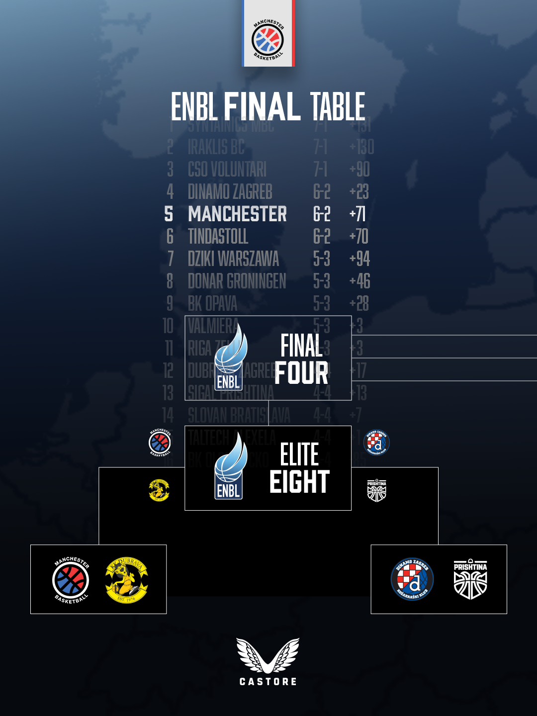 Upon conclusion of the European North Basketball League group phase, MCR finished fifth place overall earning a historic last 16 home tie against Croatian outfit... Dubrava!